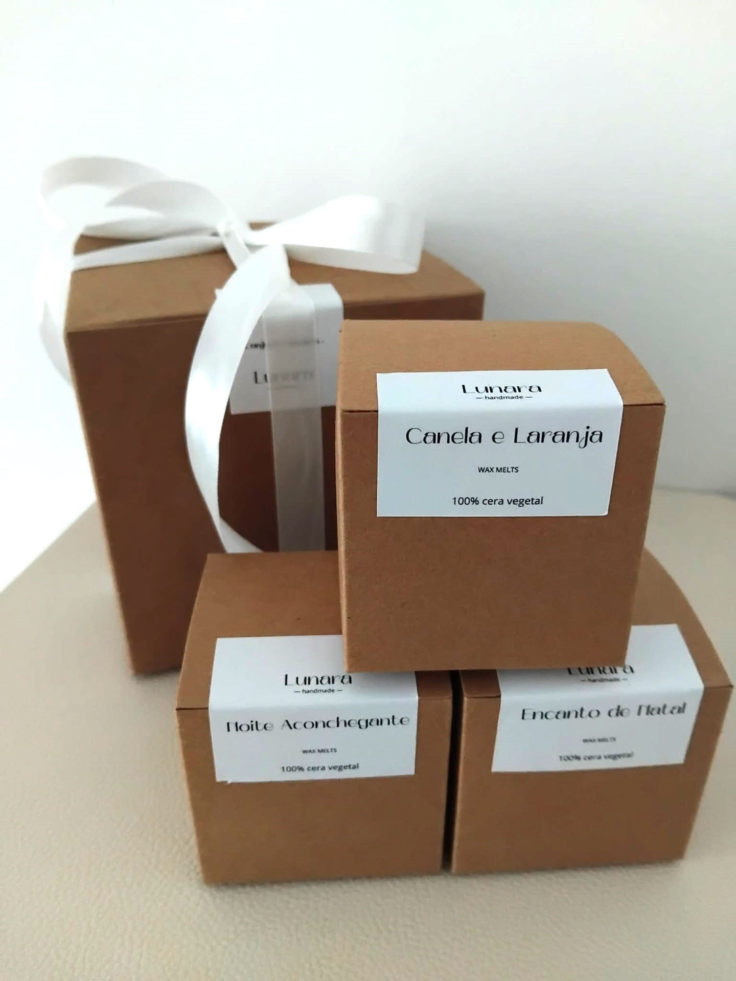 Todos os wax melts são feitos artesanalmente com cera 100% vegetal, essências veganas e cruelty-free.